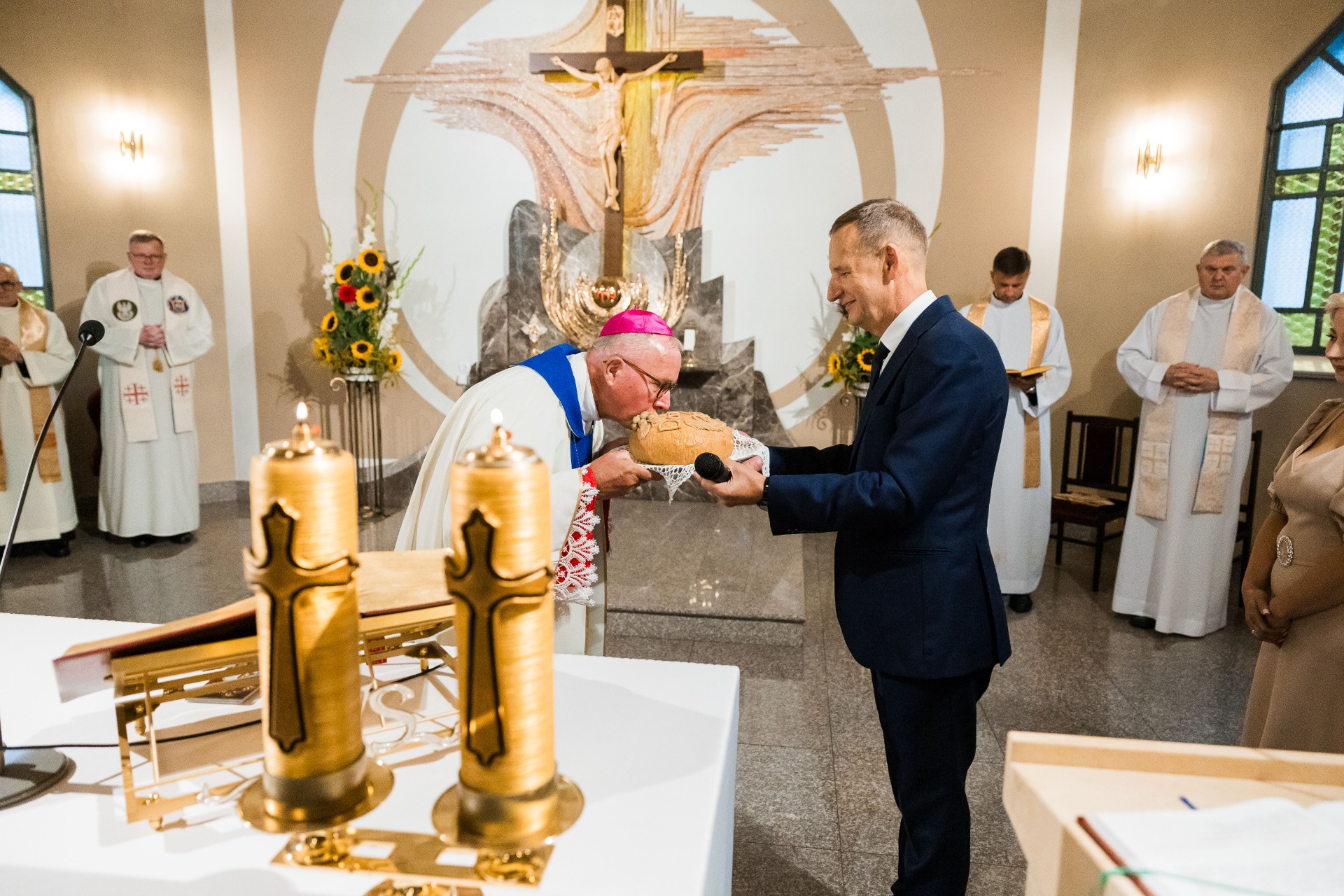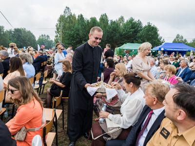 Aby tradycji stało się za dość, ksiądz Biskup, Proboszcz Parafii pw. Św. Maksymiliana Marii Kolbego, Wójt, przewodnicząca Rady Gminy, starostowie dożynek oraz ucznowie szkoły w Kozikach podzielili się chlebem ze wszystkimi uczestnikami tego wyjątkowego święta.