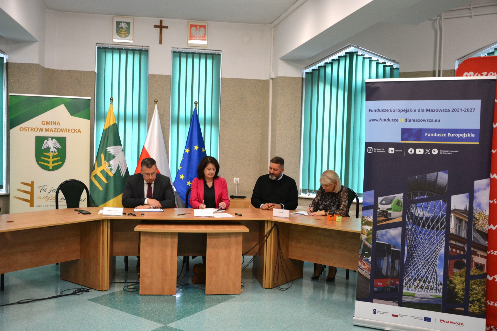 22 października 2025 roku w Urzędzie Gminy miało miejsce uroczyste podpisanie umów dotyczących realizacji projektów, które otrzymały dofinansowanie z budżetu Województwa Mazowieckiego oraz środków Unii Europejskiej.