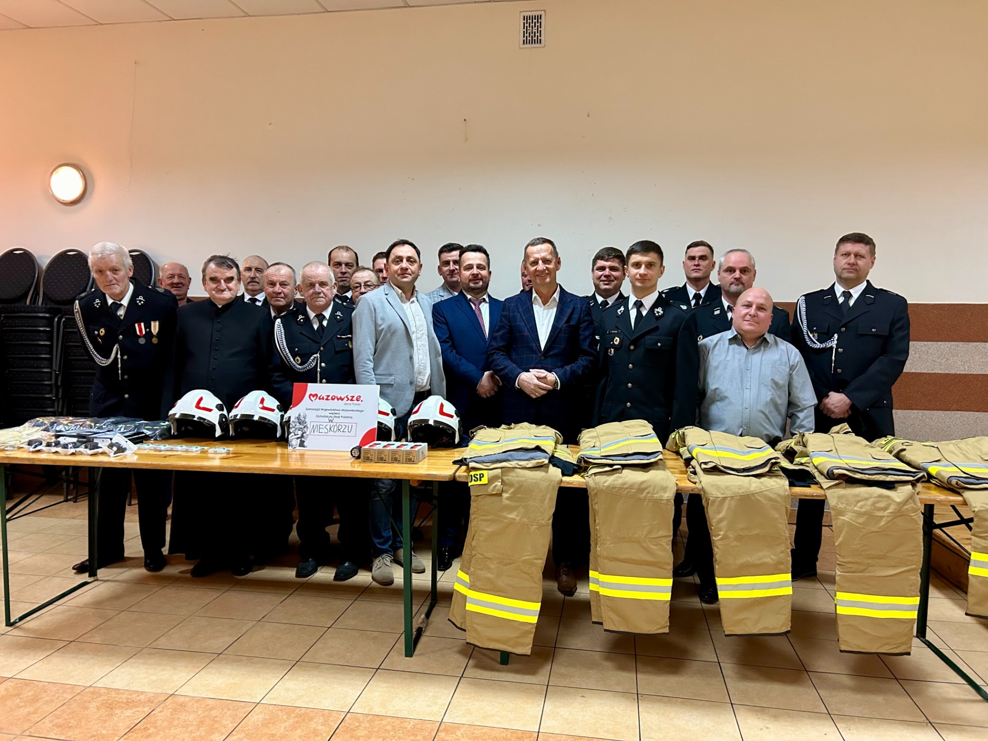 Strażacy zostali wyposażeni w 5 kompletów strażackiego umundurowania specjalnego tak zwanych „nomexów”. Taki sprzęt jest strażakom niezbędny, aby mogli brać udział w akcjach i zapewnić bezpieczeństwo mieszkańcom oraz samym druhom podczas udziału we wszystkich działaniach ratowniczo-gaśniczych.