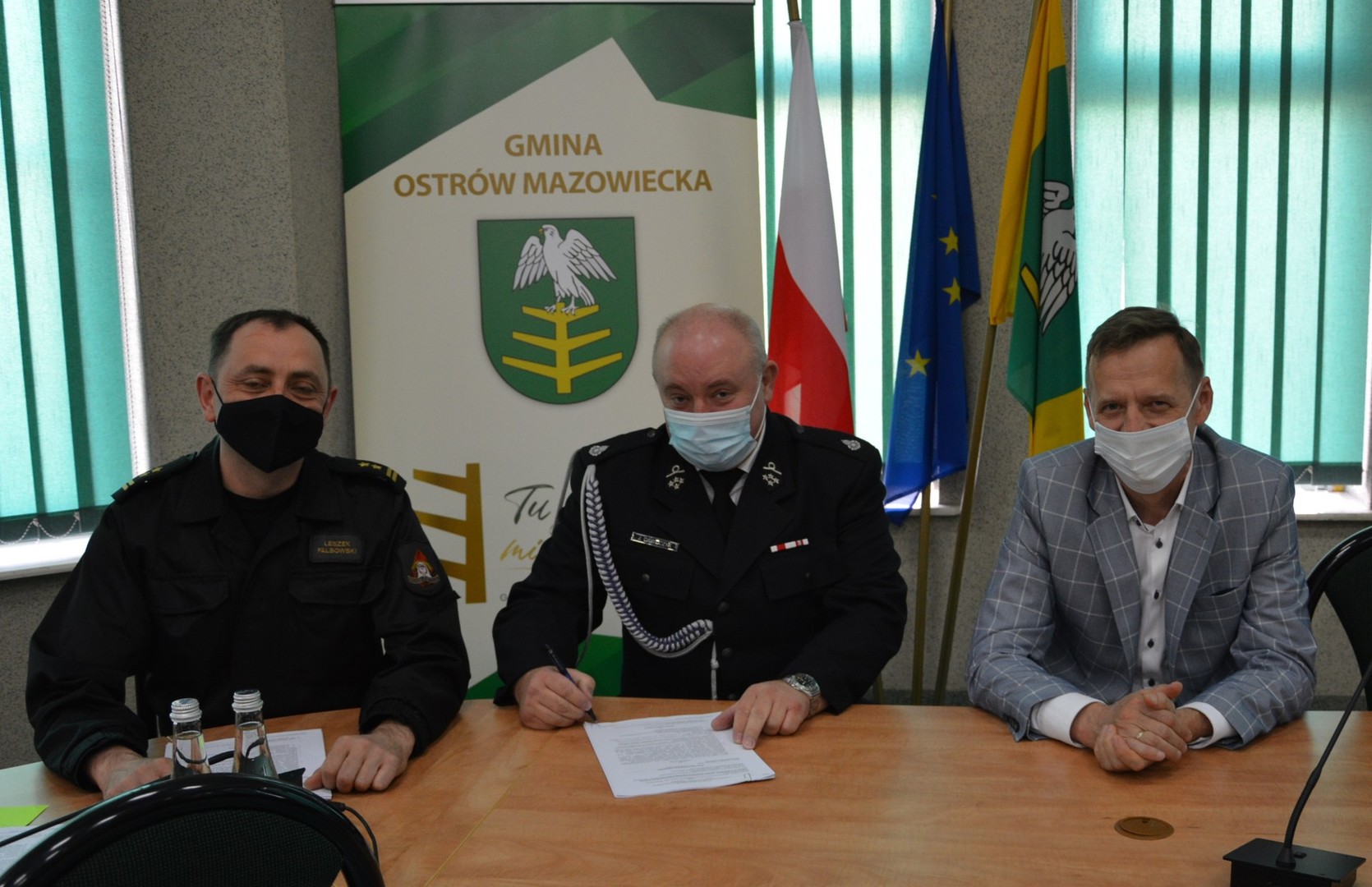 W czwartek 13 maja 2021 r. w Sali Konferencyjnej Urzędu Gminy w Ostrowi Mazowieckiej przedstawiciele jednostek Ochotniczych Straży Pożarnych z terenu naszej gminy w obecności Wójta Waldemara Brzostka i Zastępcy Komendanta Powiatowego PSP bryg. Leszka Falbowskiego podpisali umowy na dofinansowanie ze środków Funduszu Przeciwdziałania COVID-19 dla jednostek ochotniczych straży pożarnych zaangażowanych w udzielanie pomocy w czasie pandemii wirusa SARS-CoV-2. Jednostki OSP otrzymają dofinansowanie na zakup niezbędnego wyposażenia, w tym środków ochrony indywidualnej zapewniających przestrzeganie wymaganego reżimu sanitarnego i bezpieczeństwa strażaków ochotników.